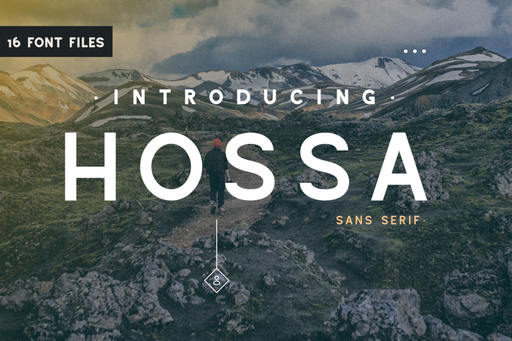 Hossa is a family of SIXTEEN Sans Serif fonts, providing a contemporary twist on a retro look, inspired Hossa works great on its own, providing a perfect font for logos, headlines, or titles. It also works perfectly as a secondary font to your existing logos and branding.